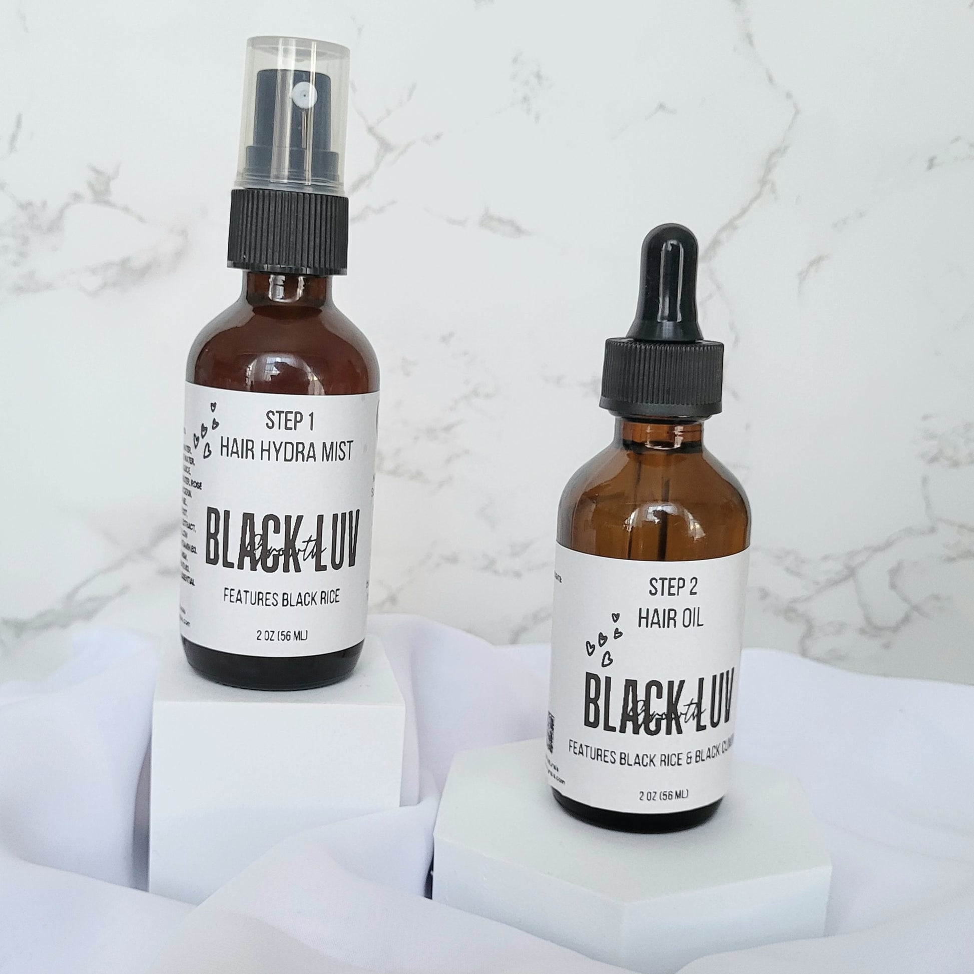 Look no further than Black Luv Hair for all your scalp and hair needs! Our revolutionary hair oil and hydration mist infused with black rice and black cumin extracts nourish your locks for unbeatable growth, shine, and body. Give your hair the love it deserves - try Black Luv today!
