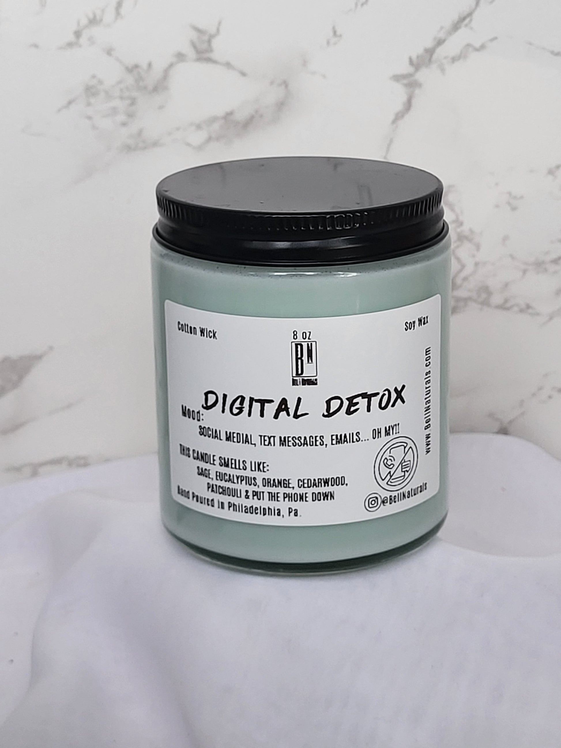 Light this Digital Detox candle and take a break from the digital world! Notes of sage, eucalyptus, orange cedarwood, and patchouli come together to create an aroma that will relax and rejuvenate your mind. So unplug, unwind, and get ready for some candle-lit, screen-free me-time!